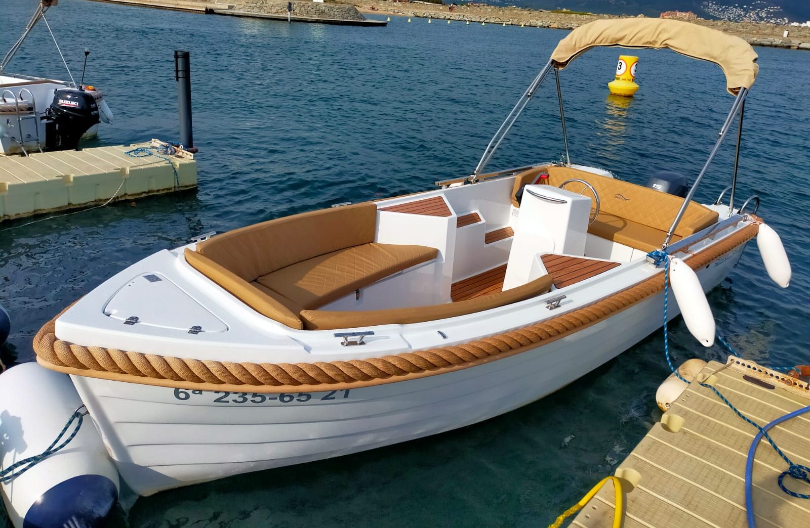 Everything was spot on from the very start. The location of tickets officer as well as the boats is 10/10, as it is right at the harbour and takes you a couple of minutes to enter the vast and beautiful Mediterranean sea. The personnel know what they are doing and explain you everything you need to know. We had the Silver 495 boat for two of us for 3h. The boat has had the perfect condition and it was easy to navigate it at max speed having no license. I personally recommend to hire a boat for at least 3h , as it takes about 50 min (subject to a weather and speed) to get to the places such as Cala Rostella and Cala Montjoi. Snorkelling in Cala Montjoi is a fab! Plenty of sea weed with large fish. You will likely to spend 1 hour + diving from the boat with Go Pro is a must do activity.